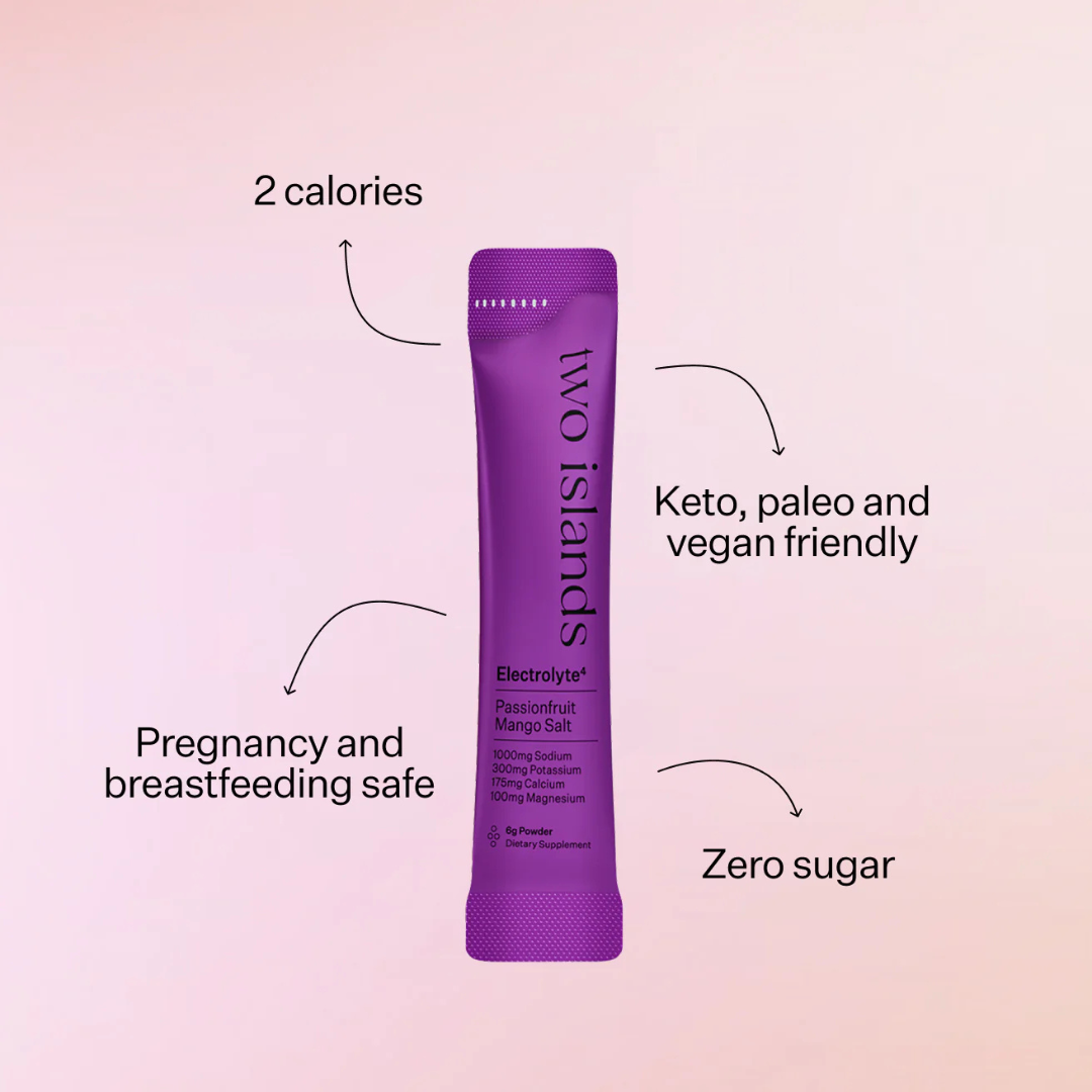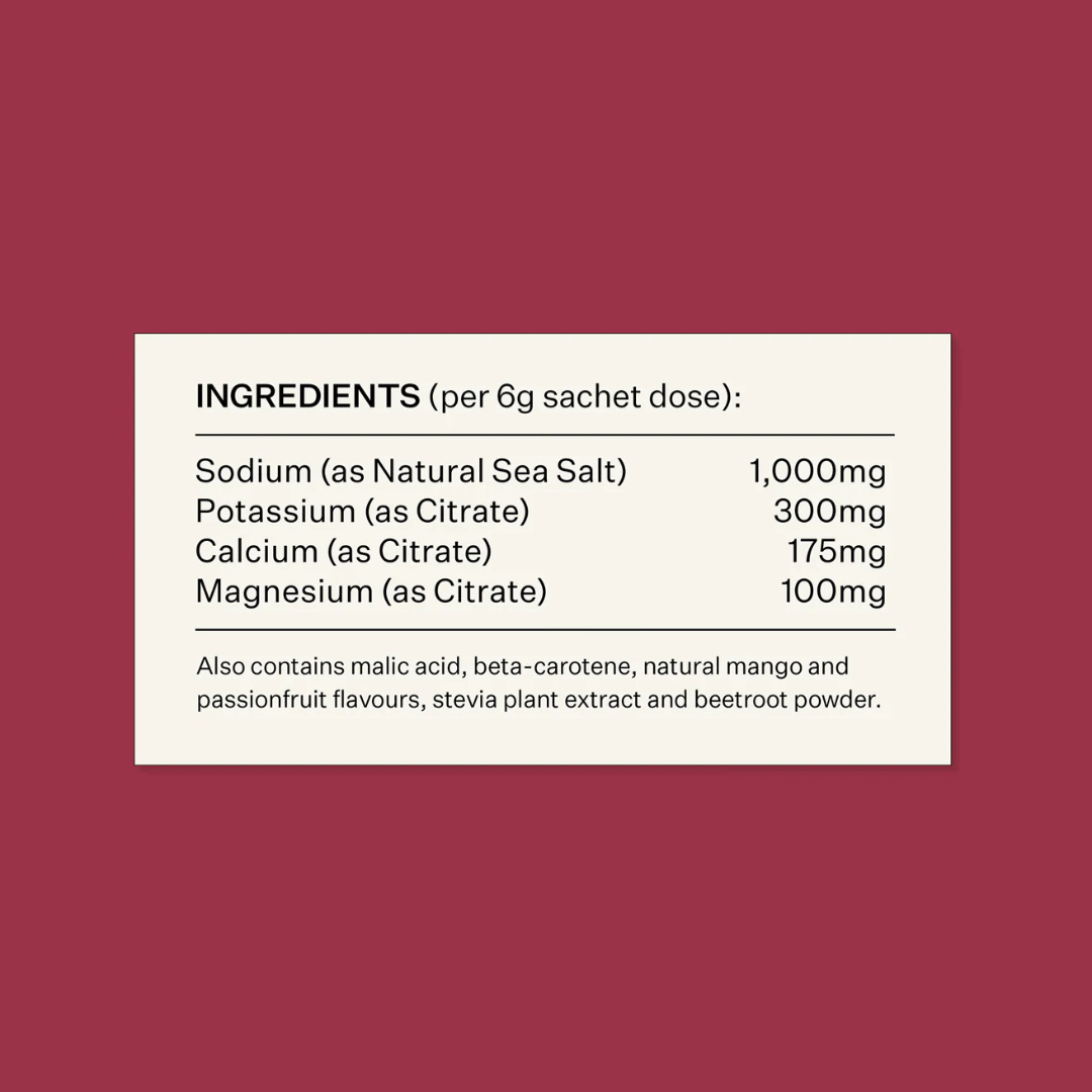 Formulated with four electrolytes, our Passionfruit Mango Salt flavour combines the vibrant tang of passionfruit with the juicy sweetness of mango, making hydration deliciously easy. Ideal for workouts, busy days or staying active, and available in convenient electrolyte sachets for on-the-go hydration.